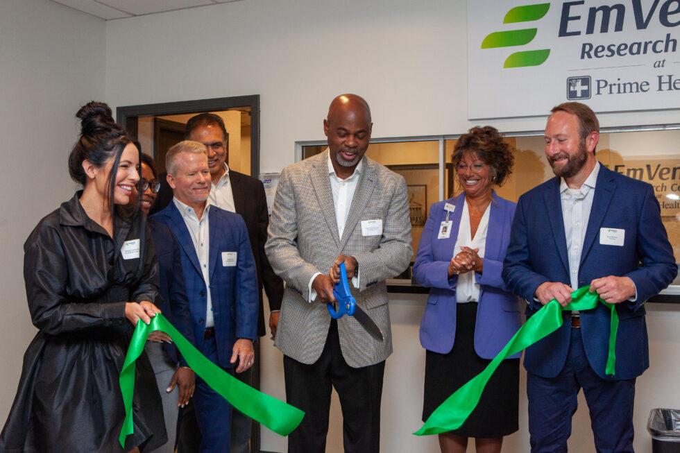 EmVenio leadership and staff gathered in late September for a ribbon-cutting and open house at one of our first clinical trial research centers within the Prime Healthcare hospital system. This location is inside the Southern Regional Medical Center in Riverdale, Georgia. Also joining us were our colleagues at PCM Trials, HealthWizz, and several of the hospital’s doctors and staff members, who toured the space and learned how this center will serve as another health care resource for their patients.